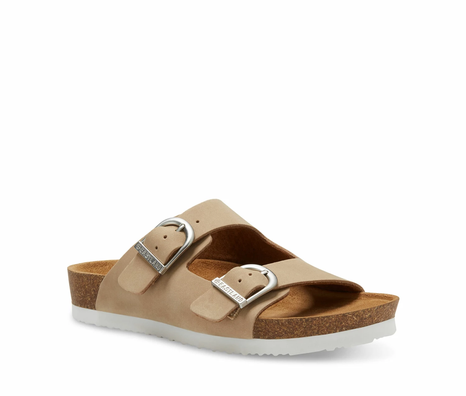 - Full-grain leather or soft suede straps. Adjustable buckle closure for secure fit. Eastland Exclusive Active Memory Foam comfort insole supports and conforms to the curves of your foot. TPR and cork midsole. Durable, shock absorbing EVA outsole.H eel Height: 1.