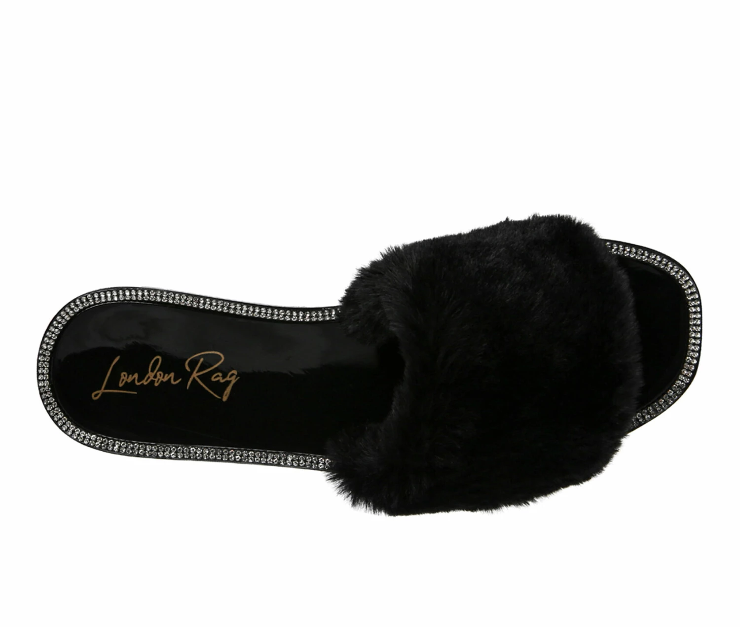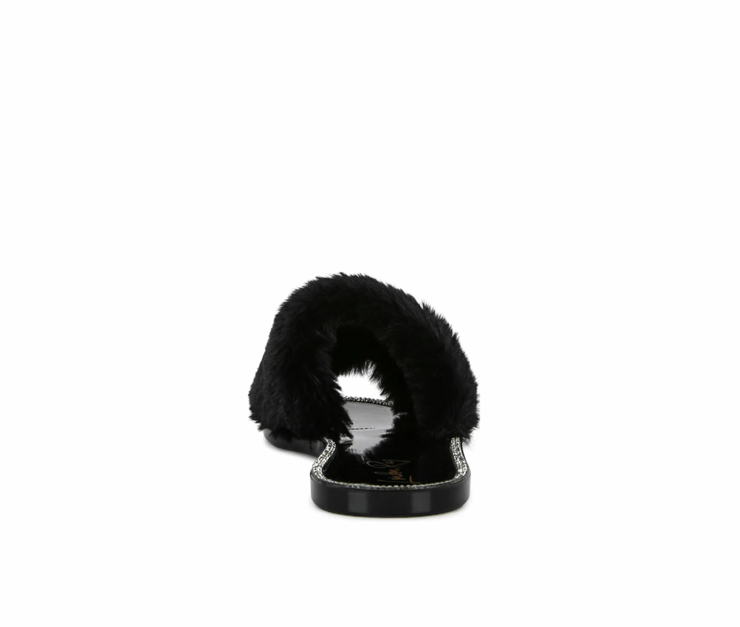 - Faux Fur Shearling Strap Slider Flats with diamante detail studs add to the look on the feet. Super soft on heels and looks good on rainy days, dries quickly.