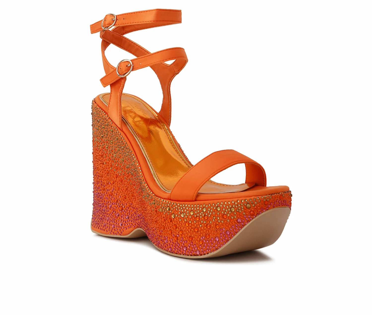 - Enter the maximalist era, these rhinestones embellished beauties are sure to make some head turns with the ultra high wedge heels. The double ankle strap fastening ensures a secure fit and looks stylish. The heels are a must-have if you like all things bling and extra!