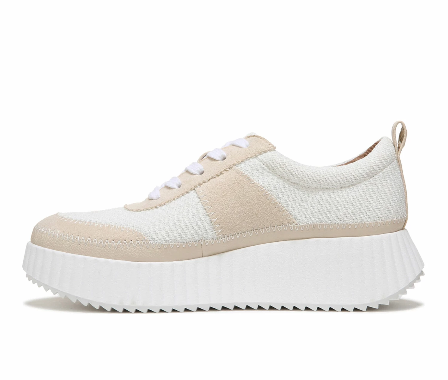 - Comfy, casual, and crafted, you’ll be sporting these cool womens fashion sneakers all season long. Fabric upper. Eco-conscious fabric lining made with 65% recycled materials. Stitch detailing. Lace up closure. Almond toe. Extra arch and heel cushioning for comfort with every step. 1 1/2 inch heel. Synthetic sawtooth outsole.